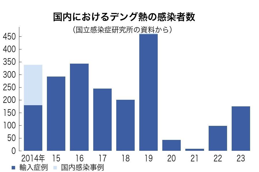 1. デング熱は蚊が媒介し、世界で年4億人が感染する