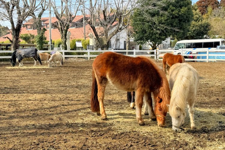 引退馬支援団体「リタッチ」の施設でくつろぐ馬たち=2026年2月17日、千葉県八街市、高久潤撮影